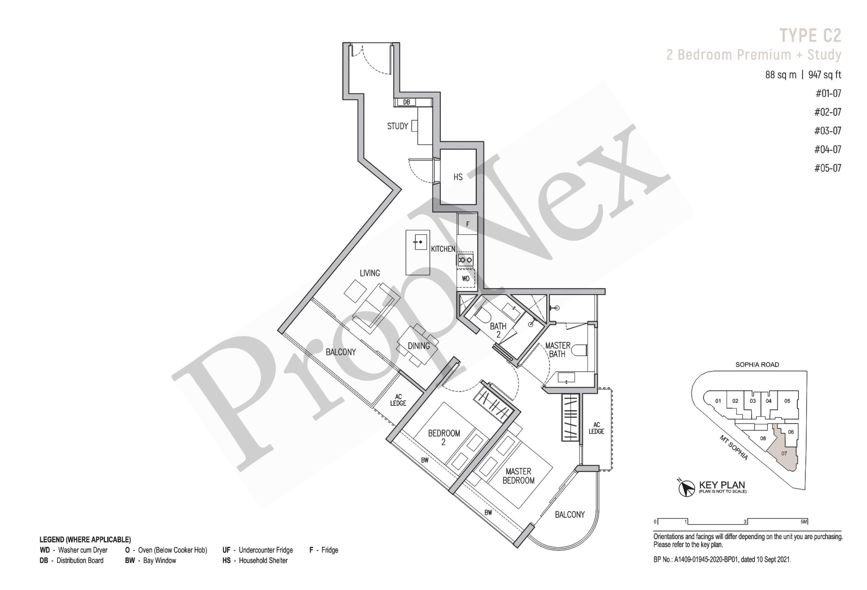 | SOPHIA REGENCY | D09 | FH | 2 Bedroom+Study | 753 | $2,916 | $2,195,748 | #01-01 |