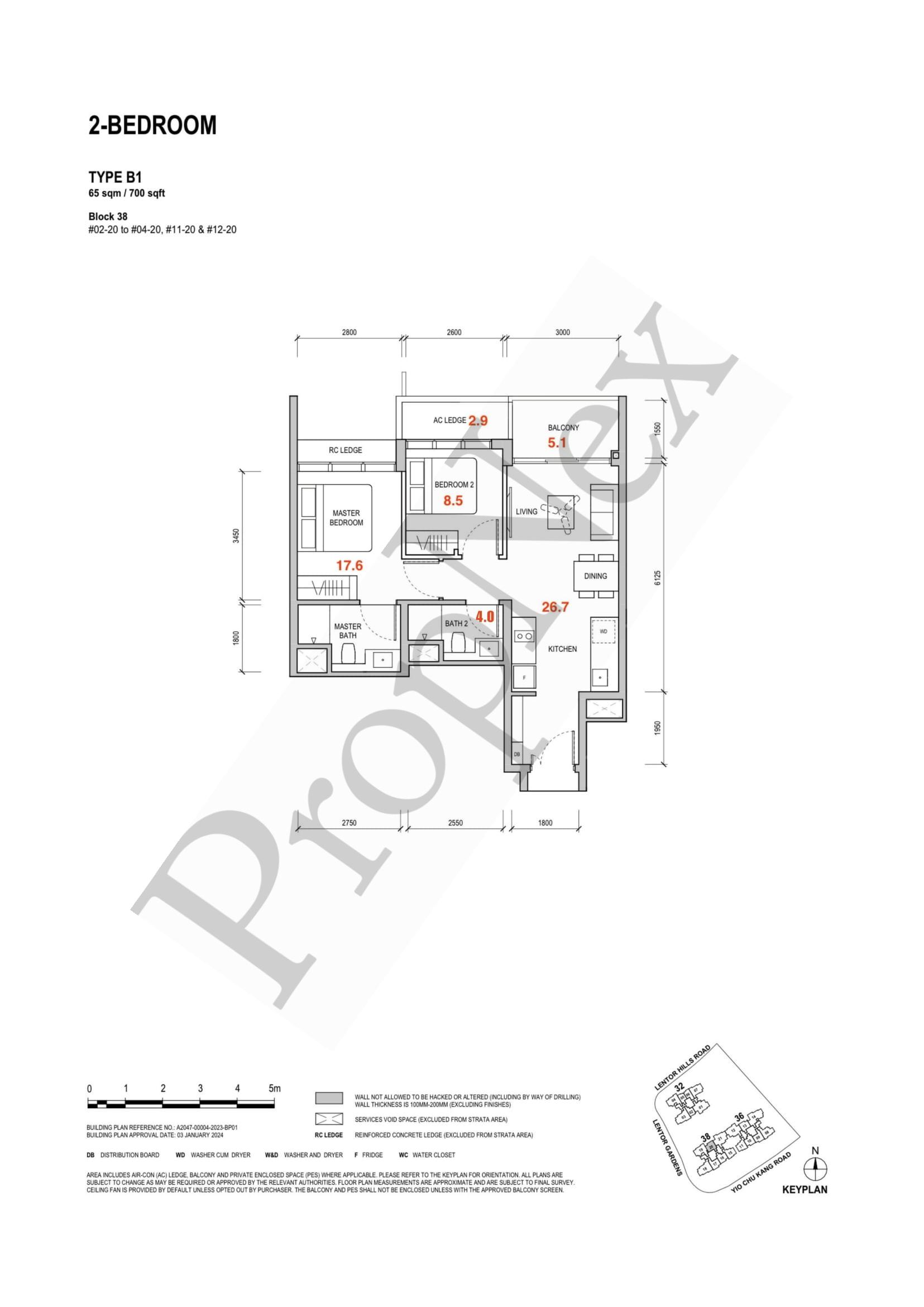 | LENTOR HILLS RESIDENCES | D26 | 99 Years | 2 Bedroom | 721 | #17-25 | $2,265 | $1,633,000 |
